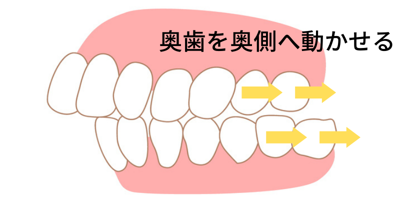 インビザラインが得意なのは「奥歯を奥方向へ動かす」こと。抜歯せずに必要なスペースを作り出せるケースが多くあります。