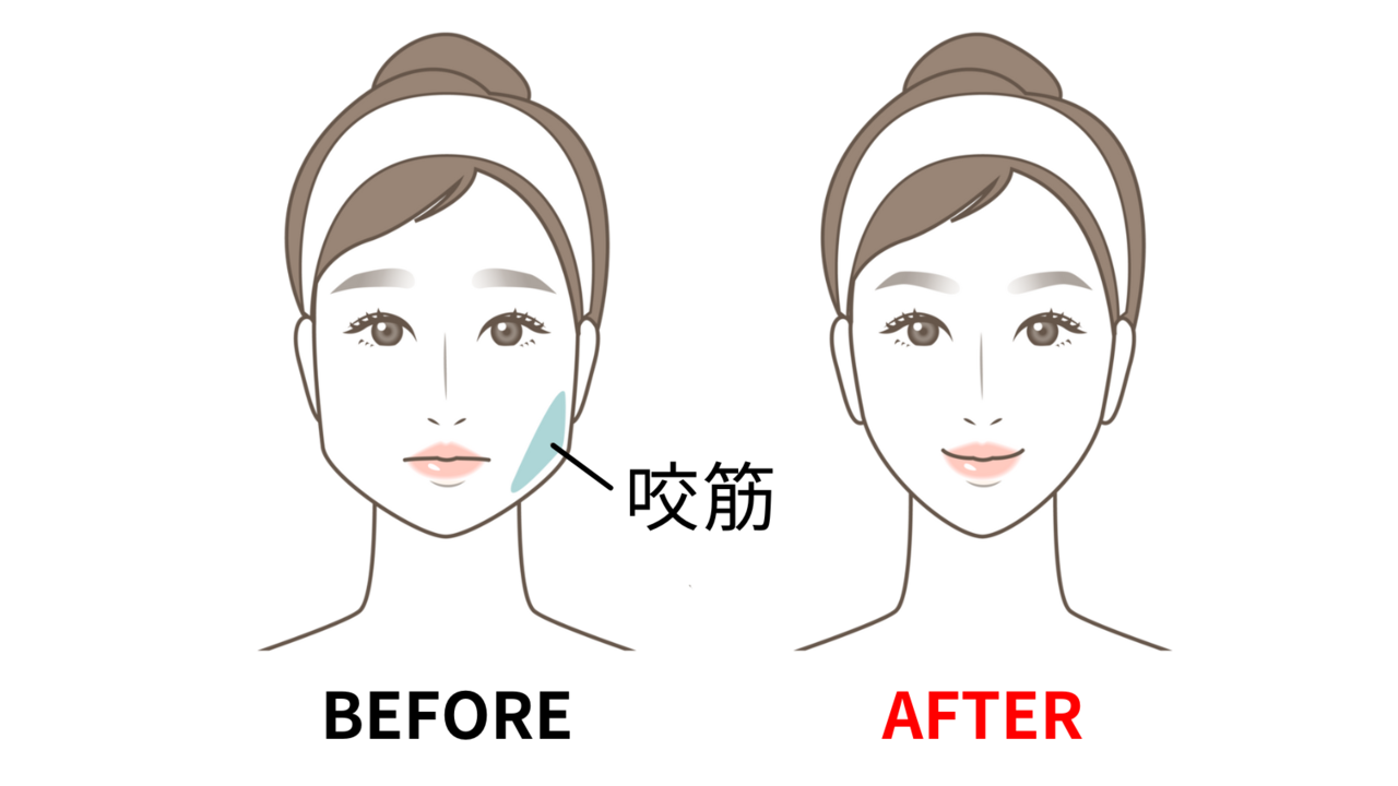 奥歯の噛み合わせを改善すると、エラ部分の筋肉(咬筋)の負担が軽くなります。これによりエラの張りが軽減され、すっきりしたフェイスラインが手に入りやすくなるのです。