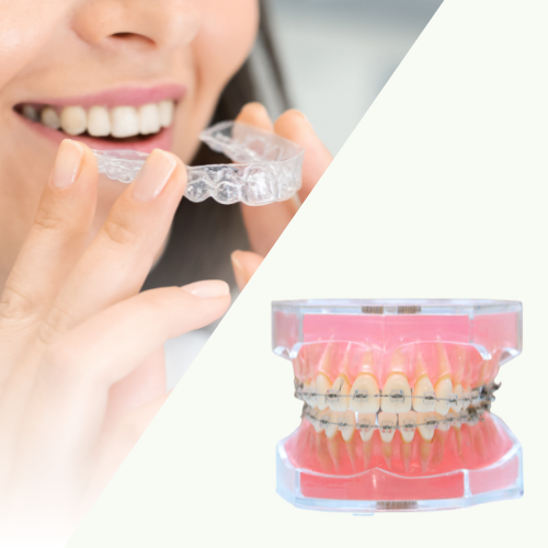 この写真は左がワイヤー矯正、右がマウスピース矯正です。